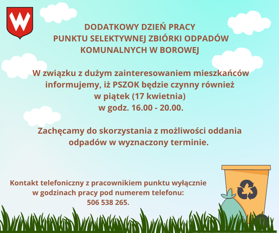 Dodatkowy dzień pracy Punktu Selektywnej Zbiórki Odpadów Komunalnych.