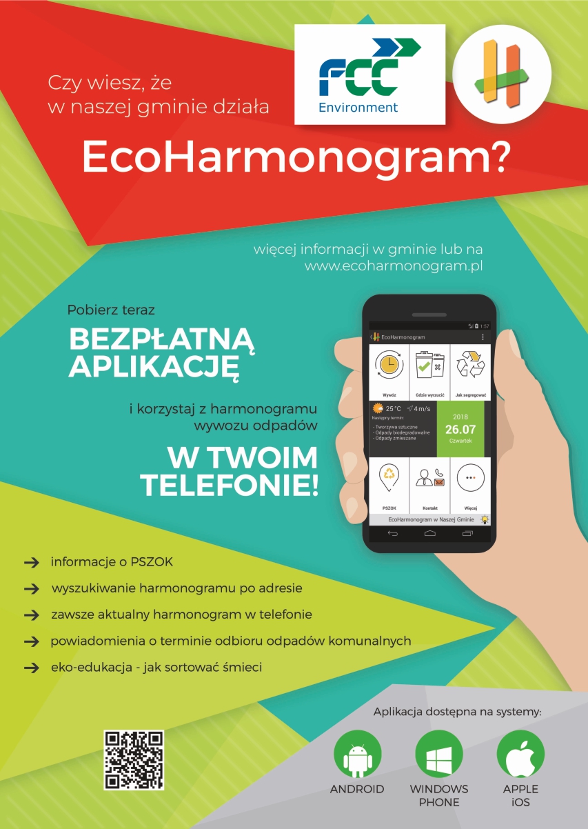 Informujemy, iż Grupa FCC udostępnia aplikację mobilną dla mieszkańców obsługiwanych gmin - EcoHarmonogram.