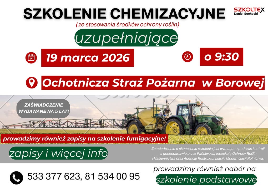 Informacja dla rolników - szkolenie chemizacyjne uzupełniające.